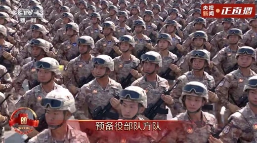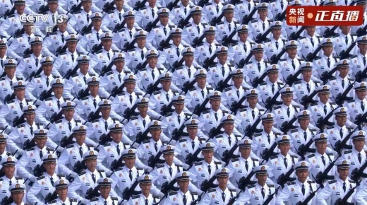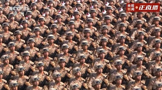 屏幕上,阅兵仪式庄严举行。由徒步方队、装备方队和空中梯队组成的受阅部队,展现出中国军队的威武雄姿。